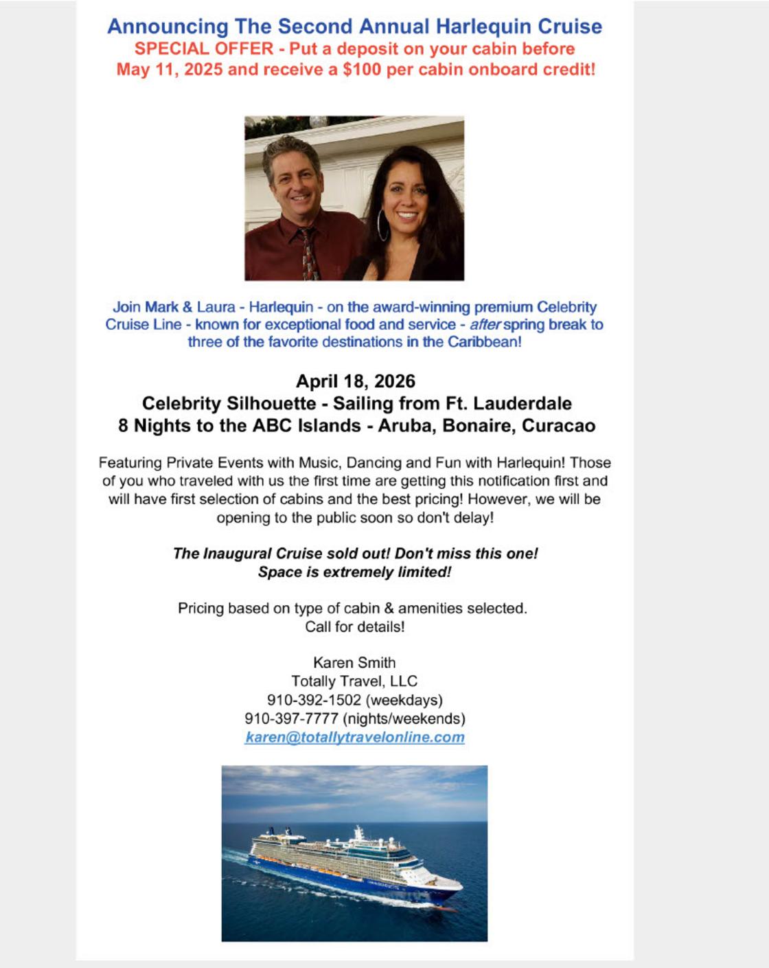 We are a husband/wife duo that has been performing together since 1989. We started out in Florida and moved to the Myrtle Beach area in 1992. We play a wide variety of music from the 50's to present, from Sinatra to Bruno Mars, Patsy Cline to Cher.